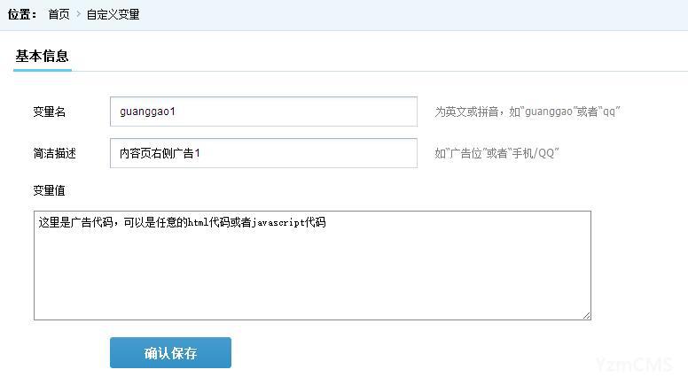 摘要:有的同學(xué)還不知道yzmcms如何添加廣告,在這里我就簡單的說一下,其實很簡單。進(jìn)入后臺->常用工具->自定義變量->添加自...