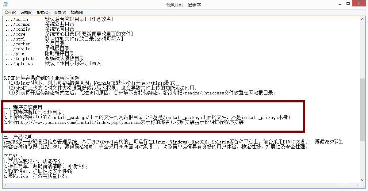 最后注意大家一下,如果你沒用用過yzmcms,其他cms也是一樣,請先看一下說明文檔