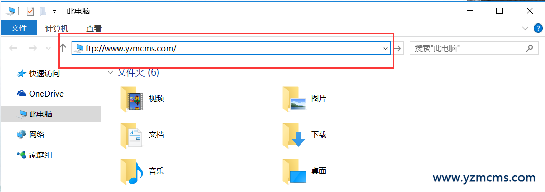 首先打開“我的電腦”,進(jìn)入界面后,在上面的路徑輸入框中輸入需FTP鏈接的IP地址或域名。圖中我輸入的是域名。